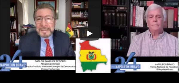 La democracia triunfa en la asamblea de la OEA junio 28, 2023 0 minutos de lectura Carlos Sánchez Berzaín entrevistado por Idania Chirinos en La Tarde NTN24, analiza el fracaso del socialismo del siglo 21 con Lula Brasil, Amlo Mexico, Fernández/Kirchner Argentina, Petro Colombia en soporte a dictaduras.. Share this… Facebook Twitter Whatsapp Linkedin Telegram